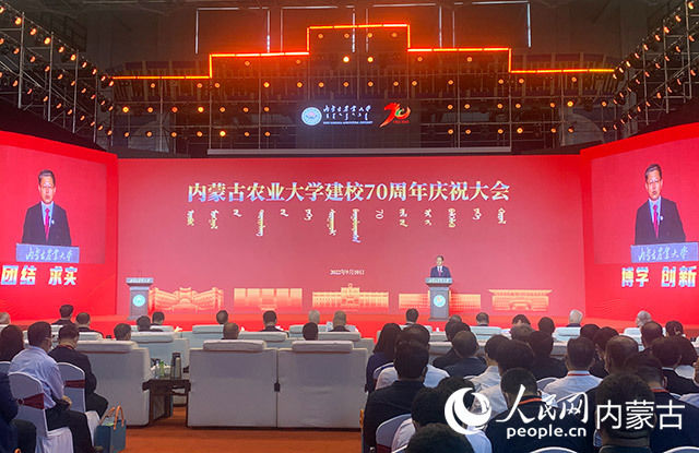 人民网呼和浩特9月10日电(富丽娟、实习生姚颖超)9月10日,庆祝内蒙古农业大学建校70周年大会举行。农大师生、海内外校友及各界人士在线上线下齐聚,共襄盛举,共庆内蒙古农业大学70周年华诞。